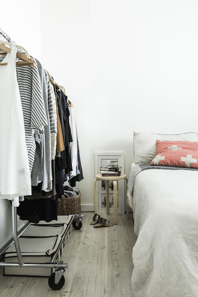 Lo que más me ha sorprendido esta vivienda es la mezcla de suelos de madera, en color blanco para la zona del dormitorio y la sala de estar y en color negro para el resto de la vivienda. En cuanto al diseño, cuenta, como siempre, con un impecable estilo nórdico que mezcla piezas vintage con otras de diseño y objetos de valor con piezas low cost, en cuanto a la paleta de colores se han decantado po ...