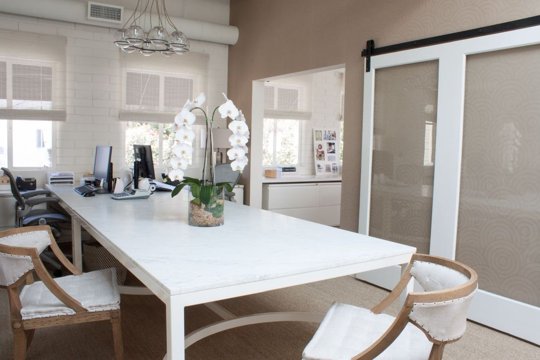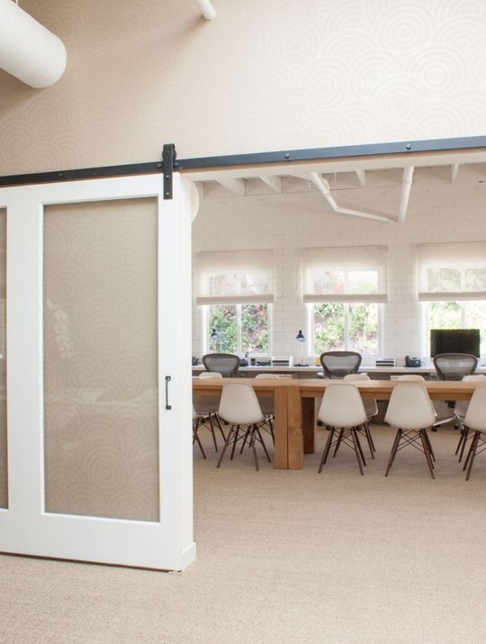 Las oficinas corresponden a Café Gratitude, un restaurante de comida vegetariana orgánica situado en Los Ángeles, el espacio en el que se ubican las oficinas ayudan bastante a conseguir el efecto deseado, un espacio con altos techos de vigas de madera y muchísima luz y con un toque vintage.