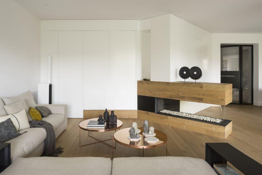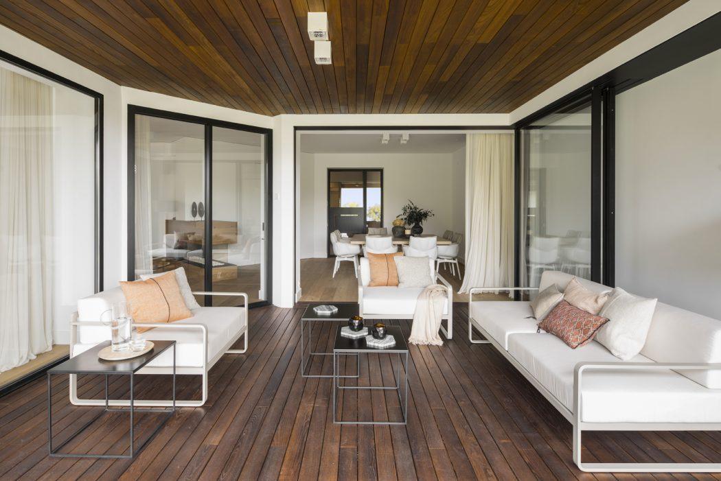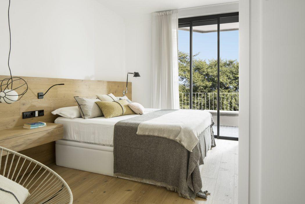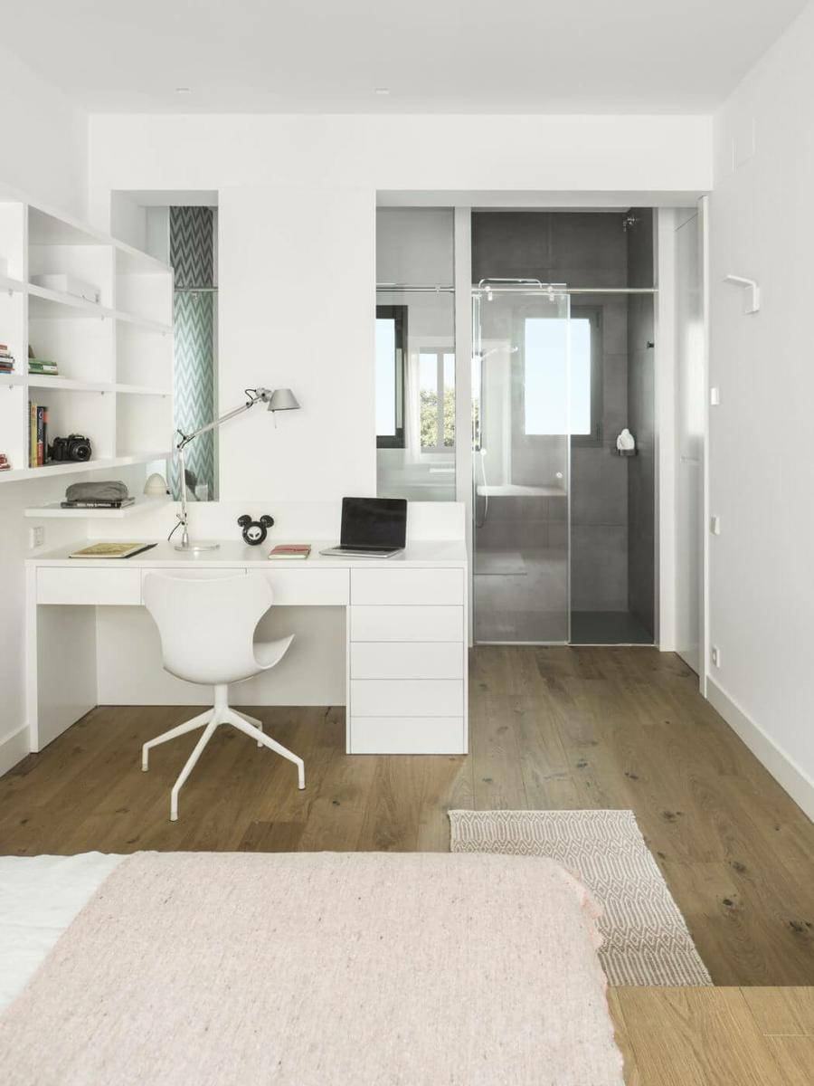 La residencia tiene cuatro dormitorios decorados con madera de roble y muebles lacados en blanco que otorgan una gran luminosidad a los espacios.