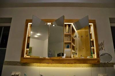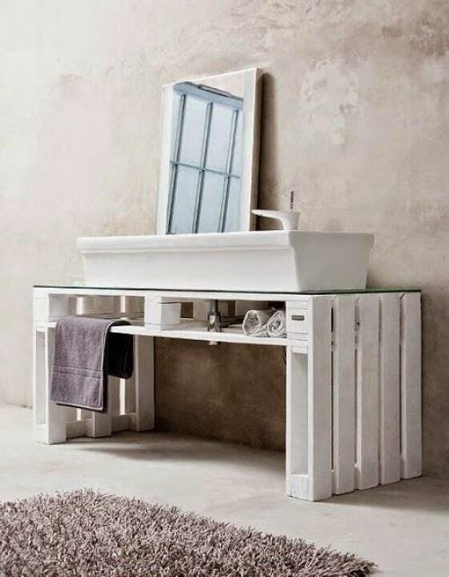 Otra opción es desmontar las tablas y usarlas para construir un mueble y espejo como en la siguiente foto.Para realizarlo tendréis que tener algunas nociones de bricolaje.