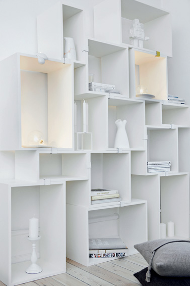 Como estanterias ...ya sean colgadas en la pared o apilandolas en el suelo...