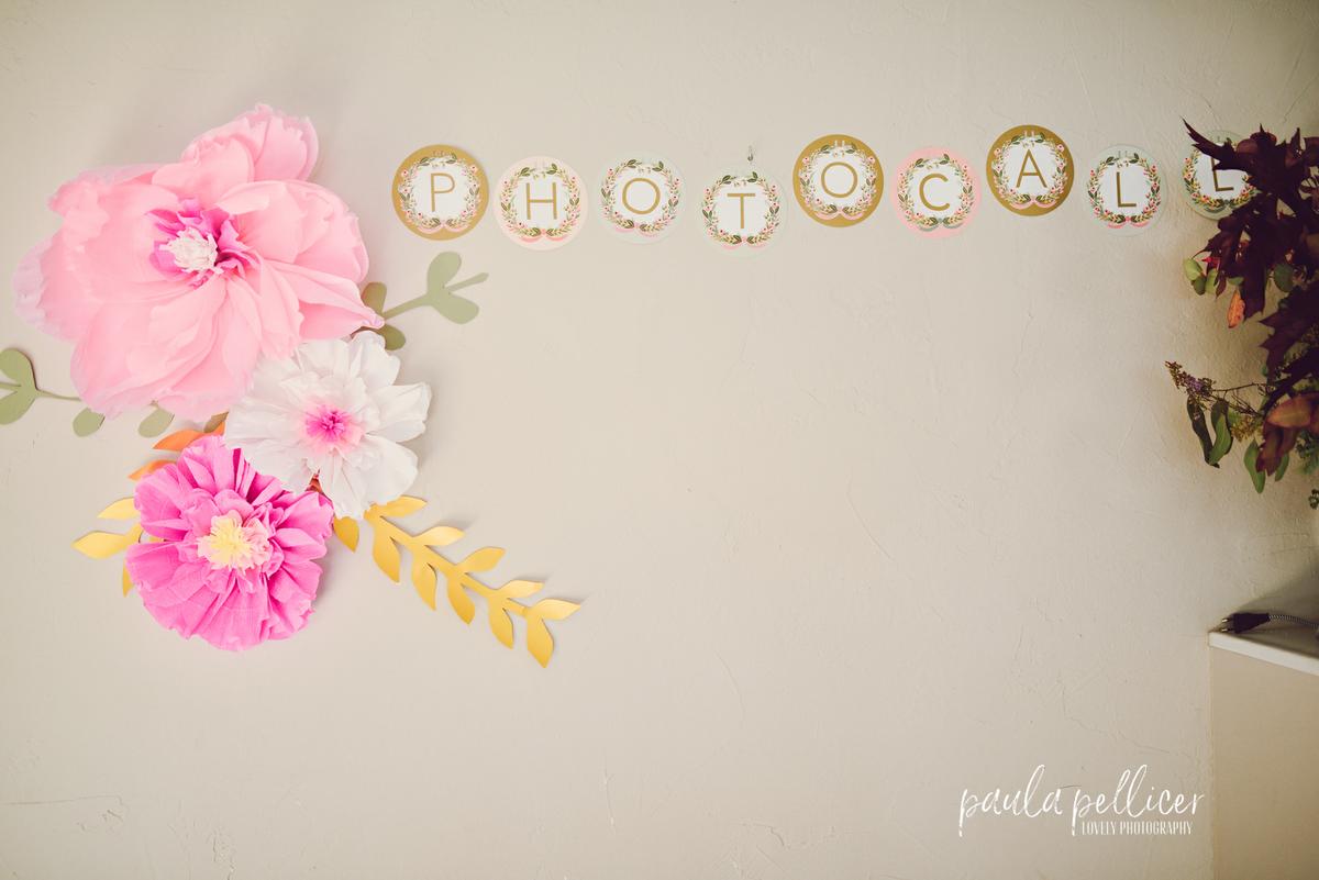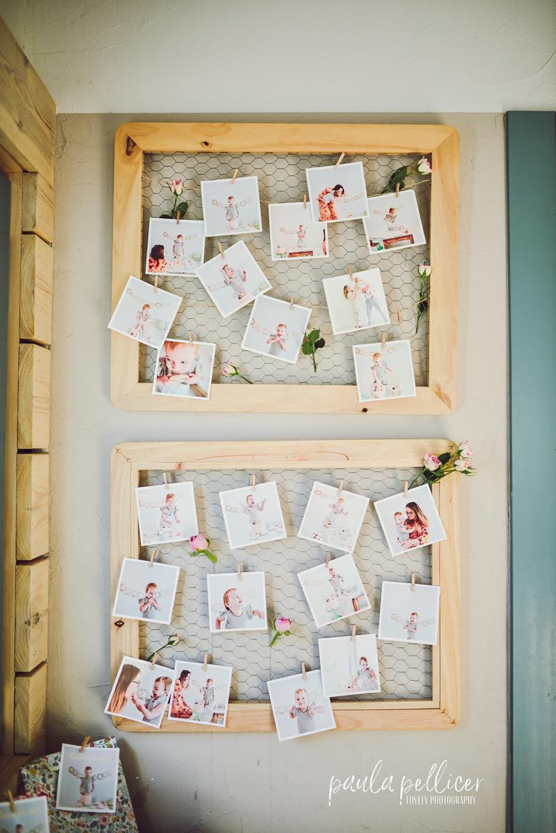 En el otro costado pusimos una pared con las fotografías de la sesión de Smash the Cake que nos había hecho Paula (y que podéis recordar aquí), y que imprimimos con Paper Lover. Siempre cuento con ellos porque me encanta la calidad que tienen y el formato cuadrado (aunque también podéis escoger el tradicional rectangular).Entre las fotos pusimos algunas florecitas que habían sobrado de la Deco que nos preparó Ana de Floritismo.