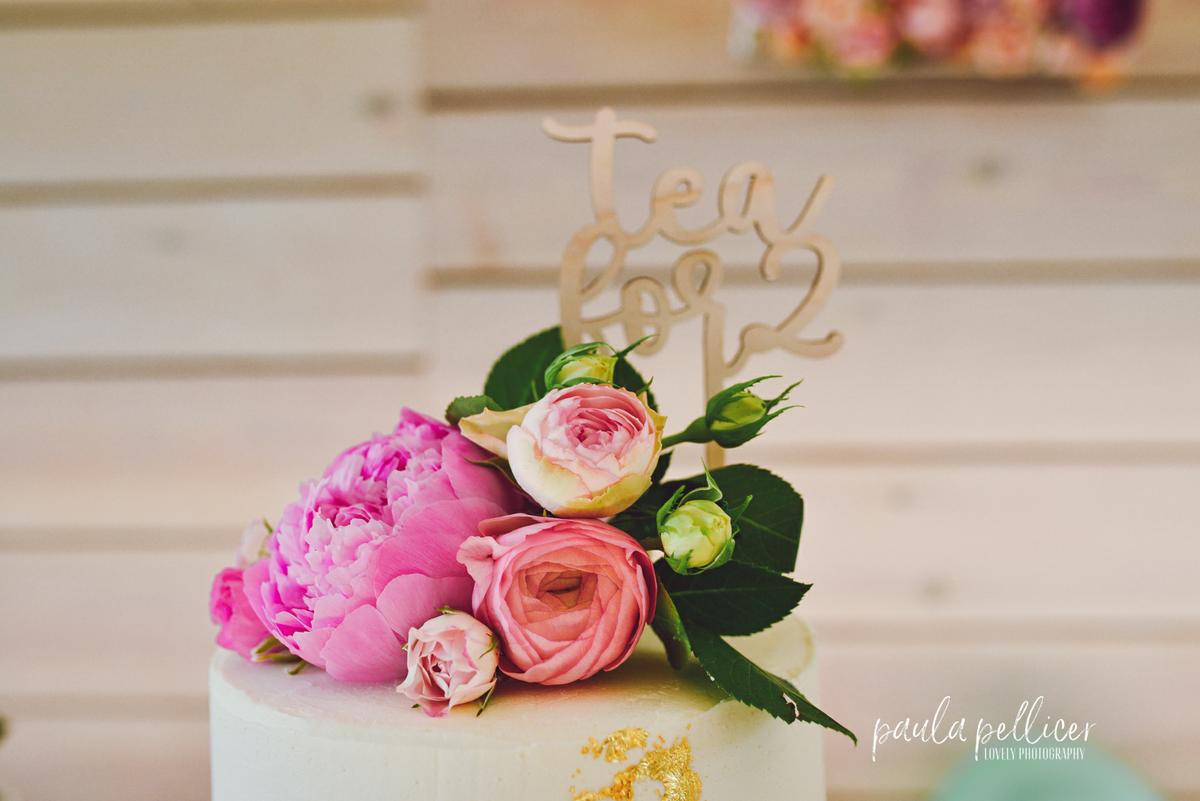 El 2 con flores, que os enseñé como hacer aquí, presidía la mesa con una garlanda de que hico in situ Ana de Floritismo. Como soy incapaz de tirar nada y menos flores, pues tengo en casa todo lo que sobró de la fiesta, en una bolsa pensando qué puedo hacer con ellas. Así que si a alguna se le ocurre soy toda oídos. También todas las flores que vais encima de la mesa e incluso las de pastel son de Ana, frescas, preciosas y cortadas de esa misma mañana!