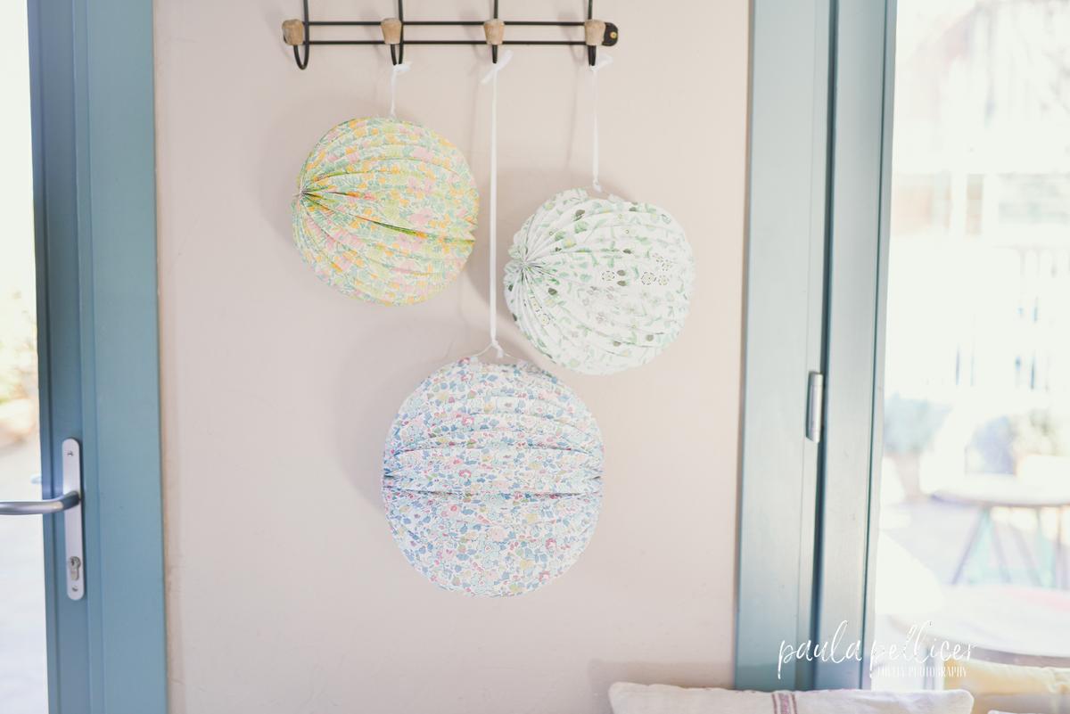 En los laterales pusimos la música, decorada con los nidos de abeja y los abanicos de papel, siempre siguiendo una misma gama de colores. Toda la Deco desechable y de papel, como estos nidos o las bolas de aquí abajo son de Hascot Kids. Una tienda de la que ya os he hablado otras veces y de de verdad, es una autentica pasada. Si tenéis que organizar alguna fiesta, es parada obligatoria. Además están clasificados o por productos o por temáticas, así que incluso podéis encontrar ideas allí.