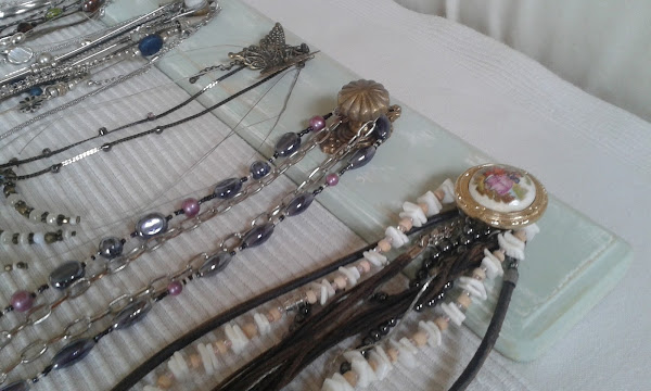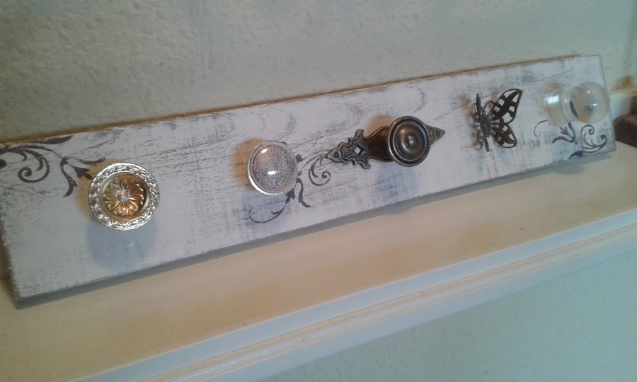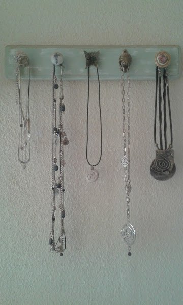 Estos percheros están creados con una simple tabla de madera. Pintamos y decapamos en un tonos pasteles. Colocamos nuestros colgadores de diferentes estilos y colgamos en pared. Muy sencillo y práctico que nos ayudará a tener mejor ordenados nuestros collares.