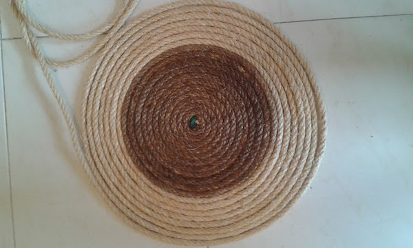 Este felpudo de cuerda tiene otra versión en mi blog y ahora he querido añadirle color, no he sido muy atrevida con otros colores más llamativos pero para gustos... Se pueden hacer de muchos colores.