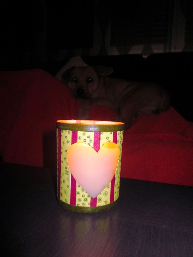 1. Recorta un trozo de cartulina (altura: menor al vaso de la vela, anchura: la longitud de la circunferencia del vaso).