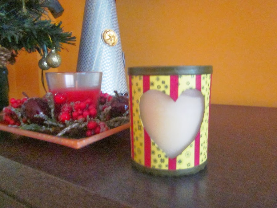 4. Fija el resultado con celofán a la vela y termina de decorar el borde de la cartulina con más cinta.