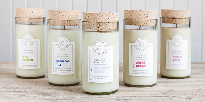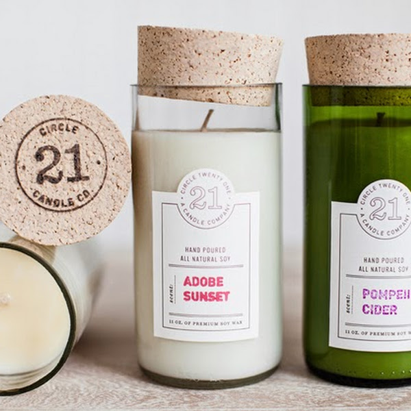 Recordáis que hace unas semanas os presentamos unas velas con olor a diferentes vinos y venían en botellas recicladas?? Pues hoy otra propuesta! Circle 21 Candles, fabrica velas de soja de primera calidad aprovechando las botellas de vino. Velas a base de soja pura que se vierte a mano en envases de botellas de vino recicladas, con mecha de algodón, y cerrados con tapones de caucho (con su logo estampado) para conservar todo su olor.