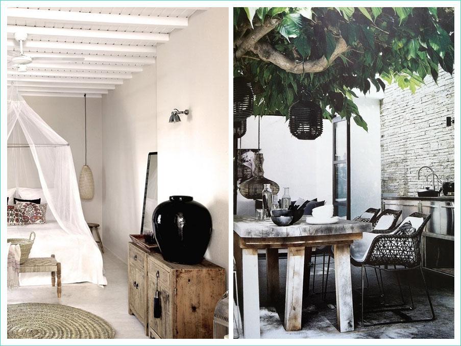 1. Para que no resulte una combinación tan fría, mezclad estos dos colores con muebles y materiales que le aporten calidez como la madera natural o decapada, el cuero o las fibras naturales. Incorporad piezas de estilo asiático o mediterráneo (cestos de mimbre, alfombras de esparto, faroles y asientos de estilo marroquí, muebles orientales…) verás como te ayudarán a lograr el efecto deseado.