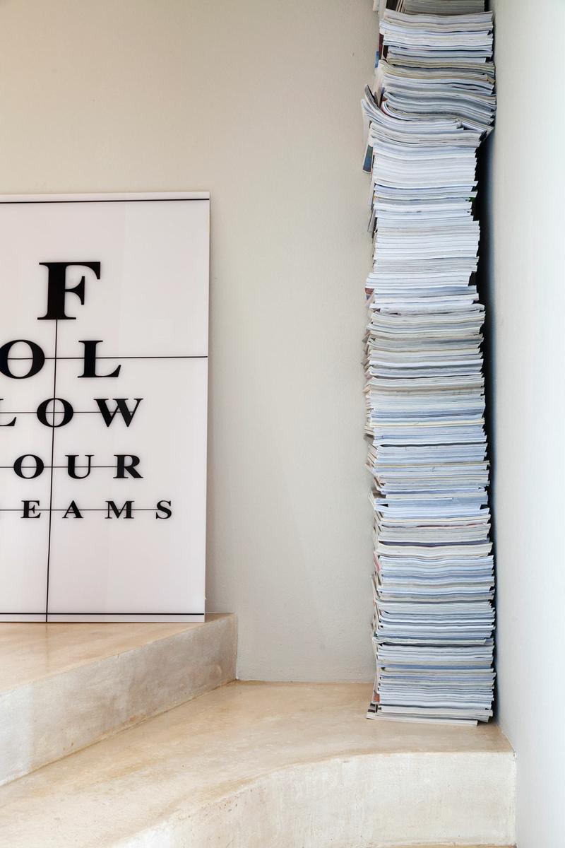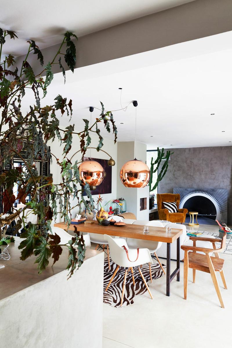Una vivienda cuyos propietarios han dejado la vida que tenían en Ámsterdam para emprender una nueva vida en Ibiza. ¡Menudo cambio! En ella se diferencia del resto de la decoración algunos objetos vintage como baúles, una silla, o una mini-moto. Todo estos artículos hechos de metal y algo envejecidos. Por supuesto también tienen cabida los muebles de diseño como las sillas Eames. Debo de confesar que me chiflan las diferentes imágenes o láminas que encontramos en las paredes, aportan personalidad a la vivienda.