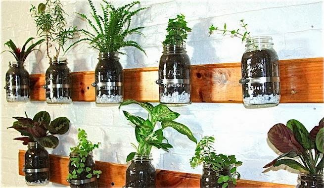 Aunque siempre queda la idea de trabajar con tarros de cristal, sobre todo si estamos pensando en tener nuestro jardín vertical en el interior de la casa, así como en una pared de la cocina.