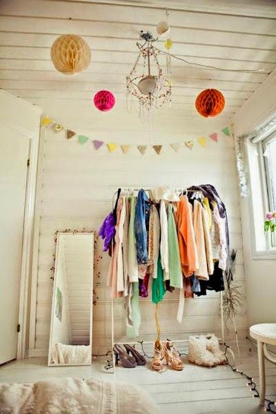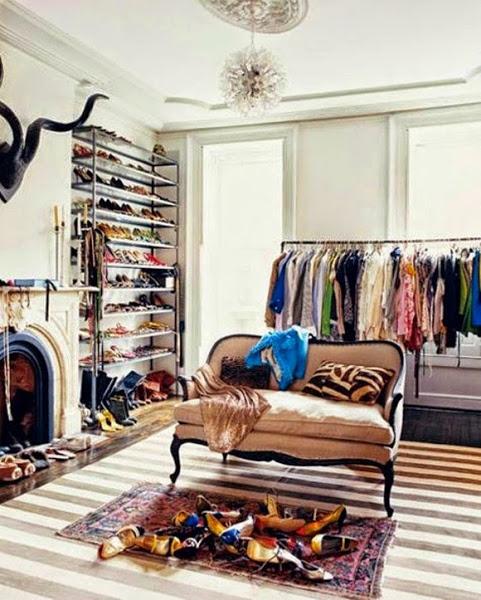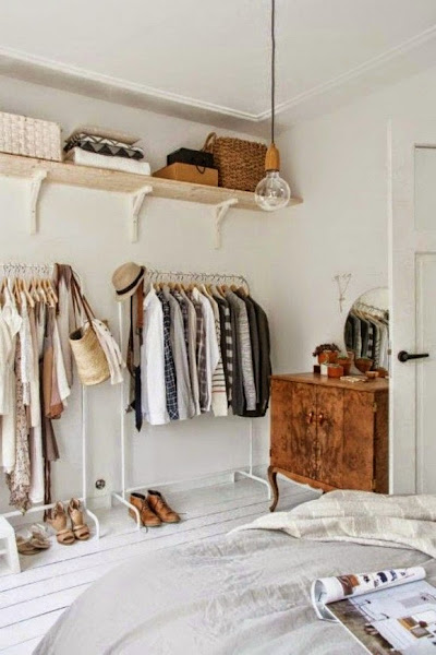 Las imagenes que subo hoy al post son de vestidores muy diferentes, unos como el de esta foto realizado con dos caballetes y dos estanterías, con orden queda genial. Muchos otros vestidores de películas que siempre hemos soñado con tener en casa, algunos sencillos de montar, otros sofisticados, con puertas, sin puertas, con cortinas, al aire, con cristal bueno como mas os gusten os dejo un montón de ideas.