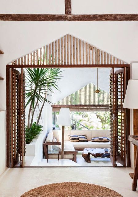Casa Tiba posee una elegancia natural: sobre el blanco más puro, bailan al mismo son maderas envejecidas y recicladas con otras piezas exóticas y la naturaleza más viva y colorida que nos ofrece ese país.