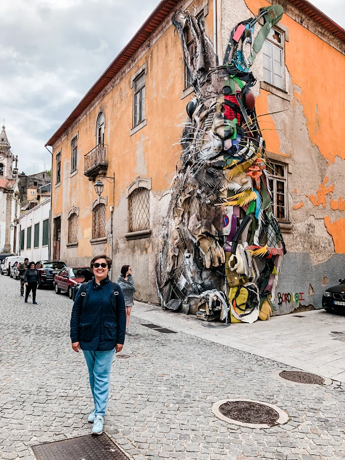 Nosotros no los buscamos pero inevitablemente te encuentras con algunos de ellos como la obra de Bordalo II titulada Medio conejo. Esta obra de arte callejero fue realizada con basura recogida por la ciudad. La mitad de la figura está sin pintar, dejando al descubierto los colores de la fachada original. Realmente resulta impactante.