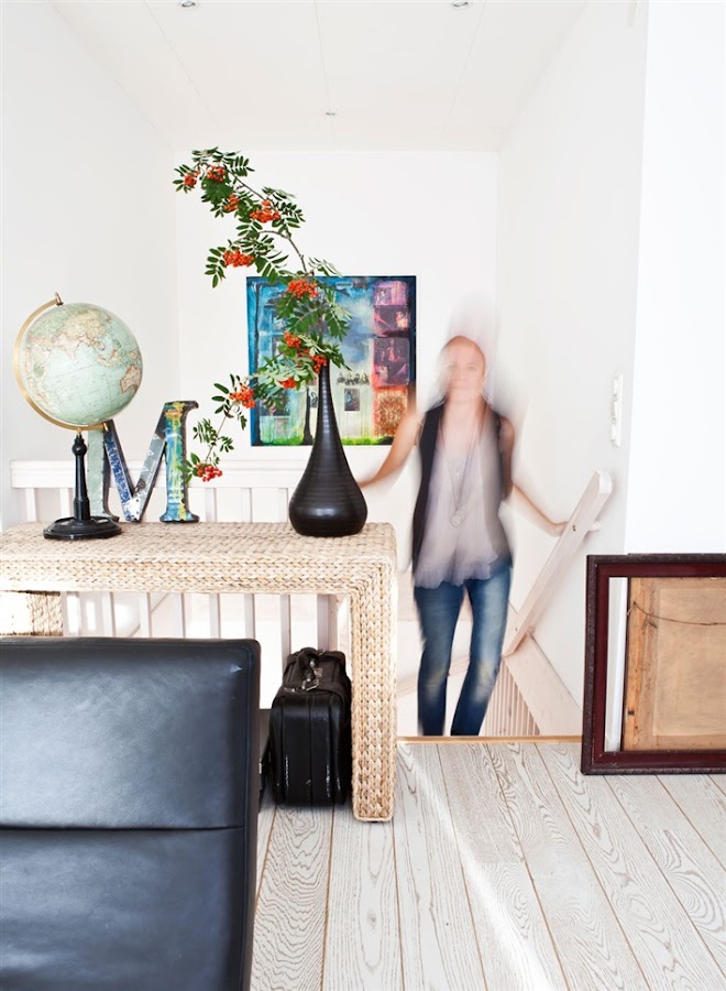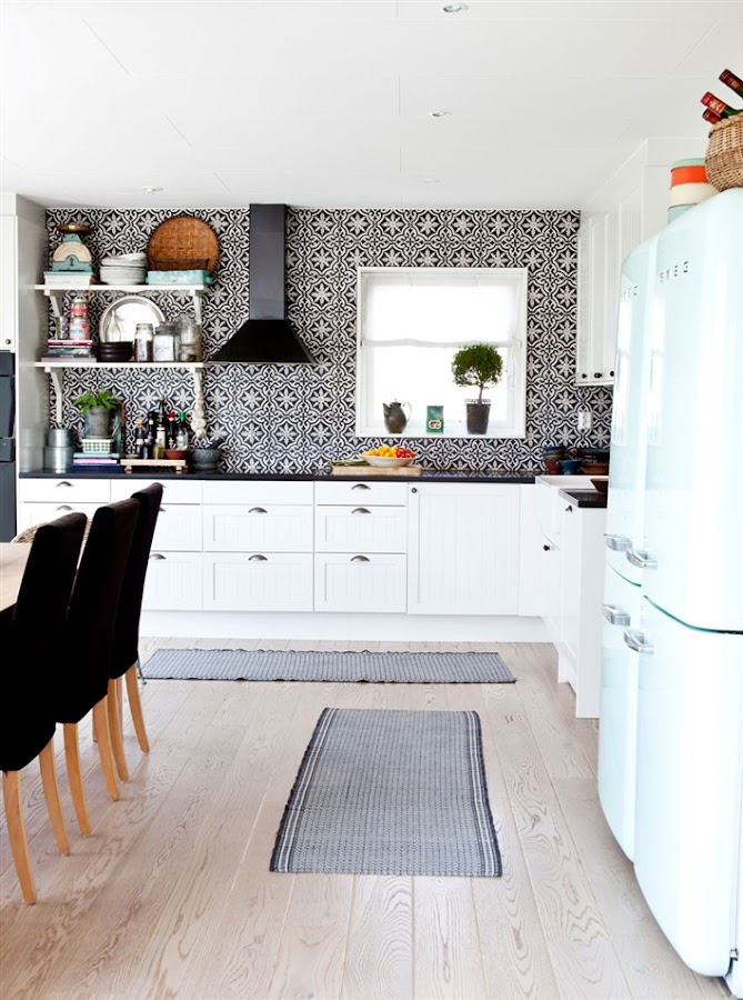 Hoy os presento la casa de una pareja de suecos (Marie y Michael). El conjunto es un mix de estilos que da como resultado una estancia acogedora y personal. En las habitaciones podemos observar el blanco en paredes y techos, muy usado en la decoración nórdica. He elegido esta casa, por la fuerte personalidad que desprende, protagonistas sin duda, los azulejos marroquíes, las piezas con aire industrial y el papel pintado.
