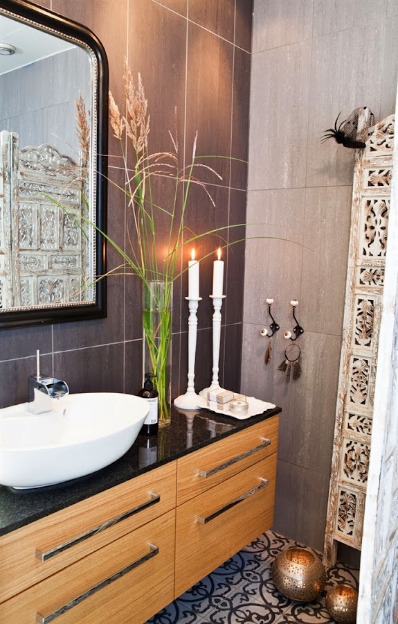 Baldosas diseño Marrakech. El biombo de la misma corriente decorativa.