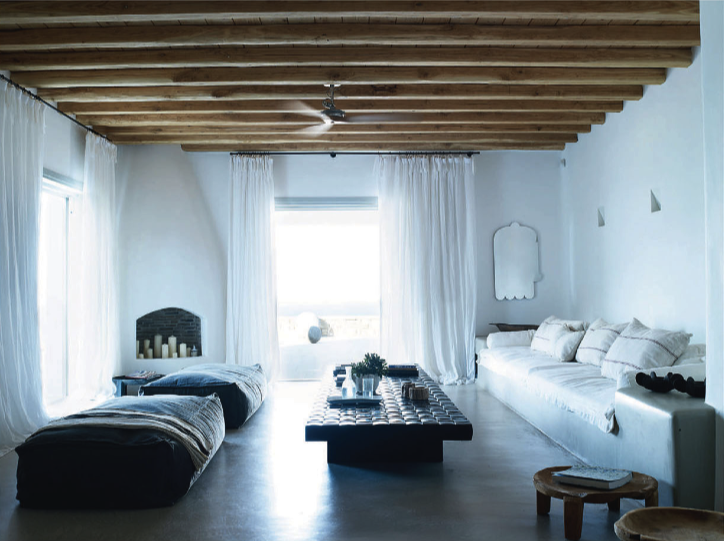 La arquitectura de la zona me maravilla, con soplos de aire fresco en sus paredes blancas, con la calidez de sus visillos, las notas de color en mobiliario, los sofás bajitos al estilo marroquí...