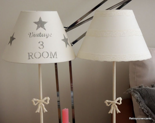 Aquí os mostramos, juntitas, las dos lámparas transformadas, cuyo próximo destino estamos deseando enseñaros, aunque no sabemos la fecha...