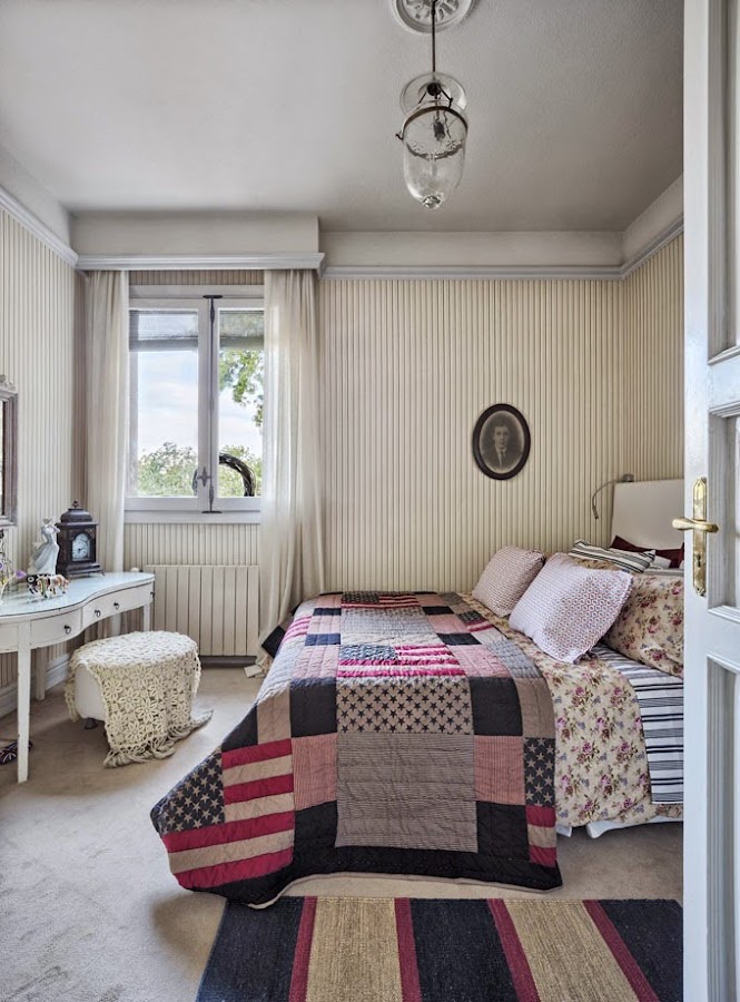Esta amplia casa situada en la sierra de Madrid esta decorada en estilo American Vintage, un estilo que se caracteriza por utilizar en su decoración sofás en terciopelo, piel o cuero, mezcla de texturas, tonos oscuros sobre todo en suelo y muebles. También utiliza, piezas rescatadas de anticuarios y simbolos como los colores y la bandera americana en baules y en los estampados de cojines, mantas o ...