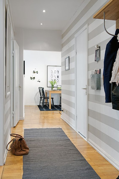 Las franjas en un pasillo alfombrado, pueden ayudar a acentuar la profundidad de este, e indicar el recorrido a seguir por tu vivienda.