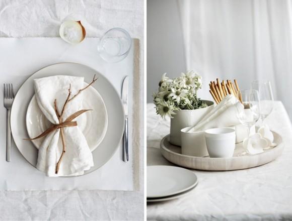 El blanco es el color de la pureza, de la frescura, de la paz, de la tranquilidad… Si quieres transmitir estas sensaciones en tu mesa, opta por una mantelería y una vajilla en tonos blancos. Te recomendamos también que las flores y el resto de complementos sean también en tonos blancos y colores muy claros, para dar coherencia a todo el conjunto.