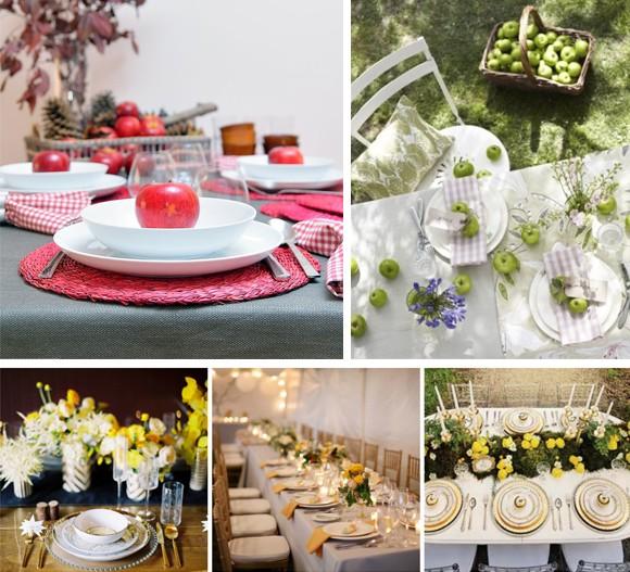 Esta es una opción intermedia entre las dos anteriores, y sin duda la mejor opción para una decoración más formal. Elige el color que te apetezca (según el momento del día, tus gustos personales, tu estado de ánimo, la época del año o segun lo que tengas en ese momento por casa) y decora la mesa con elementos de ese color en distintas tonalidades. También puedes combinar dos o más colores que se complementen para romper la monotonía de un único color.