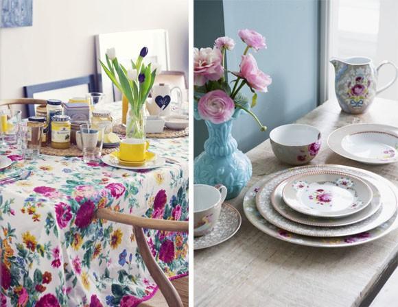 No sabemos que tienen las flores, pero es algo obligado en una bonita mesa. Si no puedes conseguir flores naturales, no te preocupes, escoge textiles con estampados florales o vajillas alegres y originales con flores como protagonistas.