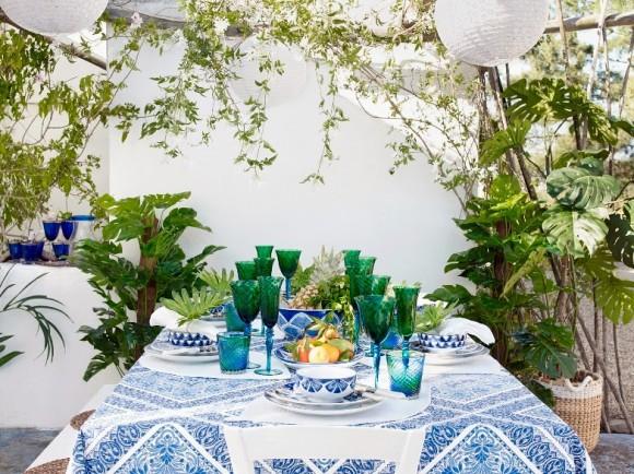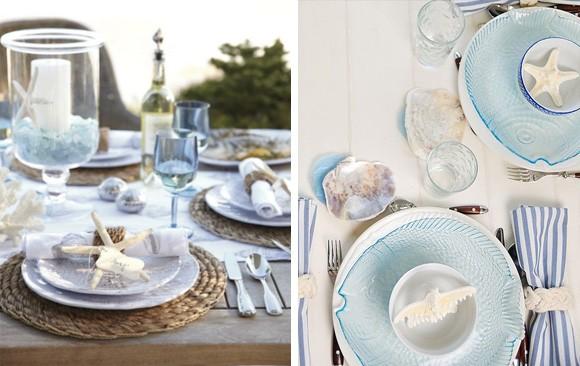 Si vives cerca del mar, este estilo es ideal para exteriores, bien en tu terraza, o bien en un picnic en plena arena, a la orilla de mar. No es de extrañar que con la vinculación al mar y al aire libre, predominen en este caso el blanco y el azul, y en muchas ocasiones, las rayas también son un acierto. Como complementos a la decoración puedes utilizar elementos marinos: conchas, estrellas de mar, jarrones con arena para colocar las velas...
