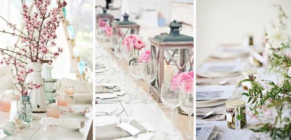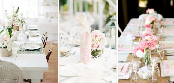 El rosa claro y el blanco serán los protagonistas de este estilo de mesas. Accesorios delicados y femeninos, combinados centros de flores y elementos vintage, harán de esta mesa la más especial para compartir entre dos.