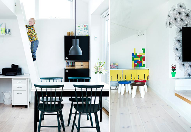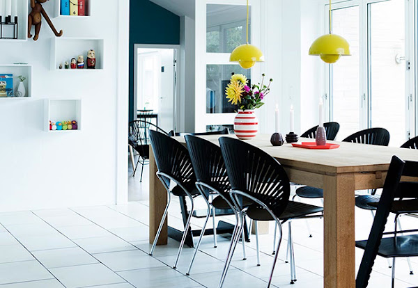 Navegando en busca y captura de esa casa para nuestra cita semanal encontré este piso en el que conviven un matrimonio con su hijo pequeño, al principio pensé que sería un piso para dos la falta de habitación infantil me hizo dudar un poco pero no, en esta casa, a la que no le faltan telas geométricas y colores oscuros, convive un niño pequeño con una camiseta de superhéroes... ME ENCANTA!!
