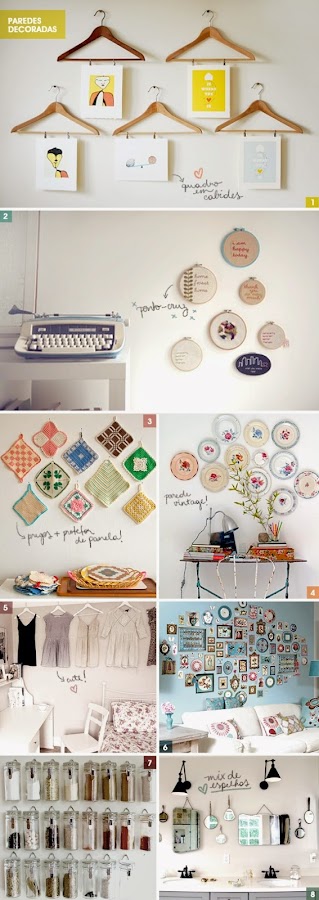 Otra forma de decorar la pared es colgando distintos objetos como platos, marcos, espejos, , os dejo unos ejemplos pero echarle imaginación y seguro que conseguís sorprendentes resultados resultados.