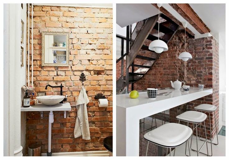 Si tienes una pared con ladrillo o piedra, aprovéchala! déjala vista le dará un aire único y autentico a tu estancia y cuanto más imperfecta más bonita. También puedes encontrar muchos revestimientos que imitan estos acabados. A continuación podéis ver algunas.