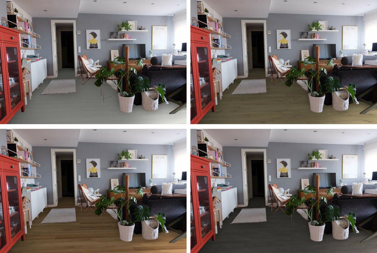 Puedes comparar dos suelos diferentes, uno junto al otro, de la misma estancia.