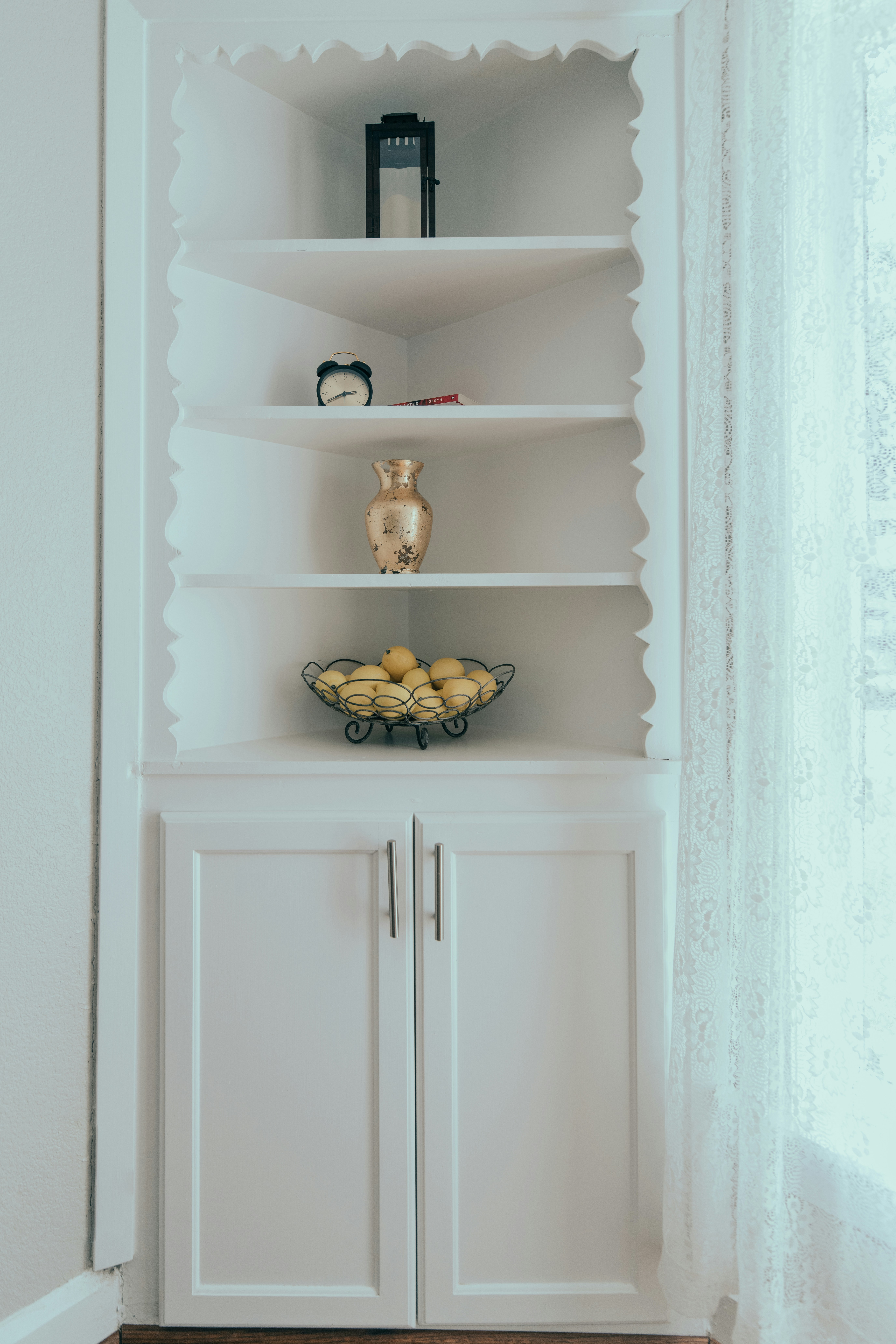 Las vitrinas altas pueden contar con estructuras que les conviertan en muebles más o menos favorables para una ubicación específica dentro del salón.Vitrina de esquina: estas cuentan con una estructura de forma triangular; con el fin de acoplarlas a una esquina de la habitación o a un rincón dentro de esta. Aunque pueden presentar una capacidad de almacenamiento menor en comparación con las vitrinas altas convencionales; estas pueden ser realmente útiles para aprovechar al máximo el espacio dentro del salón y brindar un mayor nivel de organización en su interior.