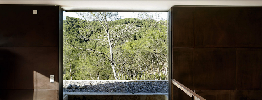 En su interior se aprecian las dobles alturas, que dejan entrar a la naturaleza dentro, mimetizándola con el entorno.