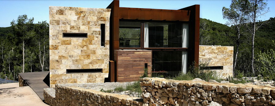 Esta vivienda esta situada en un pueblo cercano a Barcelona. Aislada, en una ladera boscosa.