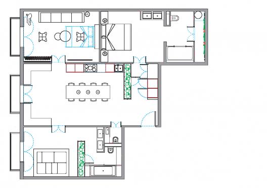 © Víctor HugoHoy os dejo esta amplia vivienda en Barcelona, amplia en zonas comunes, se ve que a los dueños les va la marcha. La cocina y mesa de comedor, son el eje de la vivienda. Es la zona principal y por tanto la más grande. Decorada con un suelo de mosaico en blanco y negro, tiene una zona que lo separa del dormitorio principal a modo de "jardín interior" enfrentada al vestidor, pero incorporada mediante una celosía de cristal.