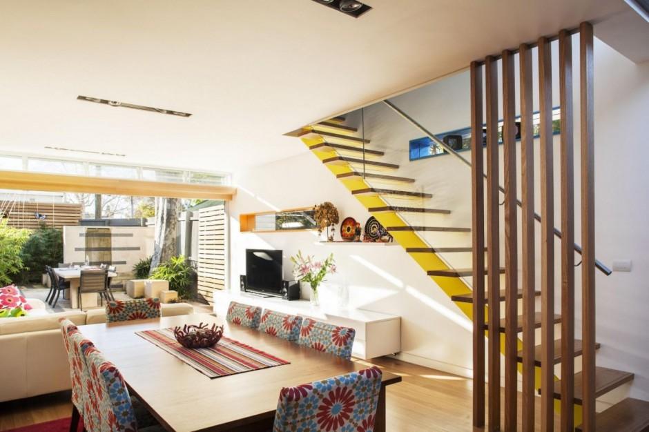 La vivienda moderna que visitamos hoy derrocha buen rollo, la clave el color que produce estos efectos tan positivos, colocado en lugares y objetos estratégicos. La planta baja es un espacio diáfano en el que comparten espacio la cocina, el salón y el comedor, la mejor forma de aprovechar al máximo la luz natural que entra por el ventanal que comunica con el jardín.