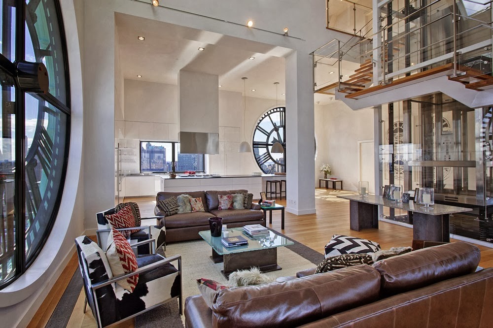 El apartamento, de más de 600 m2, se encuentra situado en Brooklyn, en uno de sus edificios más altos, construido en el año 1915. Pero lo más asombroso es que esta vivienda se ha construido en lo más alto del edificio, en la Torre del Reloj que poseía, para ser concretos, en el antiguo cuarto de máquinas.