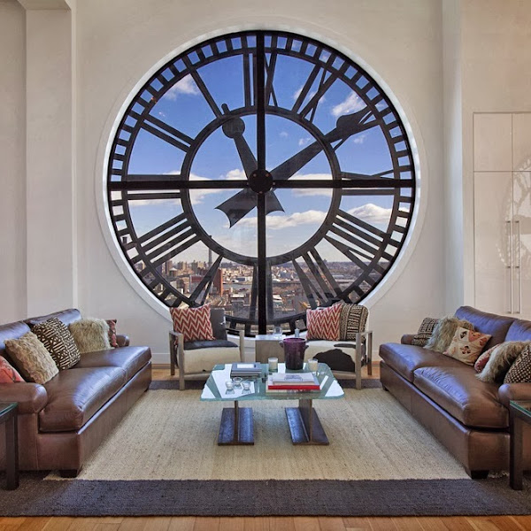 Como podéis ver el apartamento tiene un gran número de ventanas, incluso las esferas del reloj se han situado como ventanas, lo que hace que la luz y las fantásticas vistas de 360º al puente de Brooklyn y Manhattan sean uno de los puntos fuertes de esta vivienda.