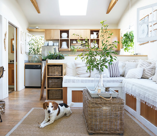 Una pequeña casa de campo convertida en hogar, porque esto es lo que es UN HOGAR en mayúsculas, una vivienda familiar con una pareja, dos perros y un bebé en camino, un claro ejemplo de que el tamaño importa pero no impide, así es la casa de Whitney y Adam en California.