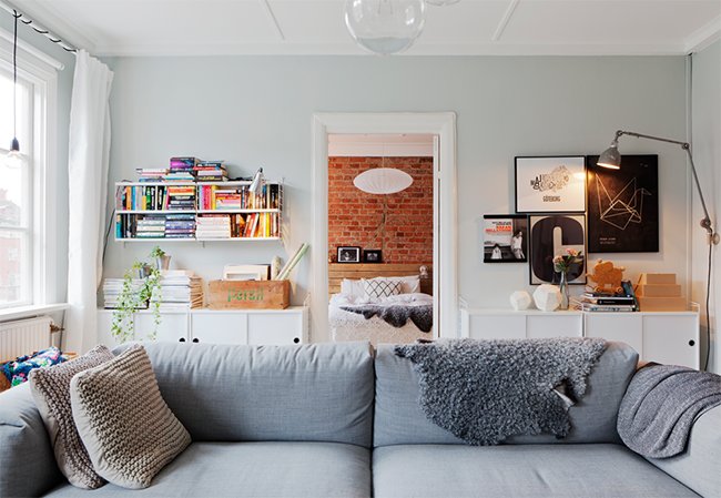 Vivir en un piso en Gøteborg de 1920 con paredes de ladrillo de las de verdad!