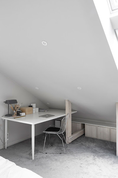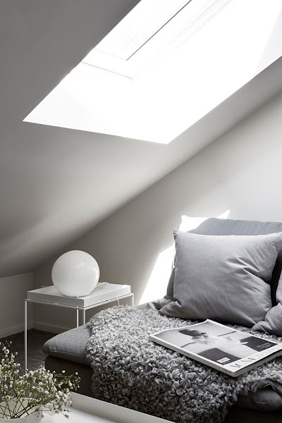 Despedir la semana con una casa bonita es bien pero si además es tan bonita, original y coqueta como la de hoy la cosa mejora considerablemente. Es una monocromática buhardilla de estilo escandinavo donde reina la tranquilidad y el sosiego, el tamaño no importa porque la han decorado pensando muchísimo como aprovechar cada metro cuadrado.