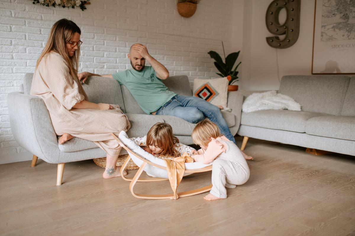 Cuando nació todas las piezas de nuestra familia salieron disparadas por los aires: todas las rutinas, todo lo que estábamos acostumbrados a hacer, las dinámicas, todo. También es verdad que las últimas semanas la tensión en casa se palpaba: yo estaba súper cansada y las niñas notaban que algo estaba a punto de cambiar y se mostraban mucho más irritables. Llegó un punto en el que todos necesitábamos que Món llegara ya para empezar a poner las piezas sobre su sitio. No sé si me explico…