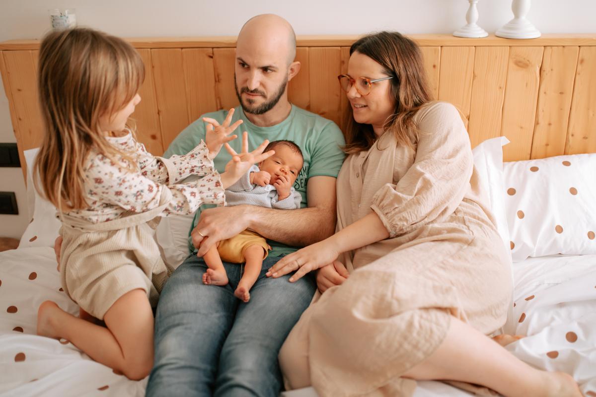 Cuando nació todas las piezas de nuestra familia salieron disparadas por los aires: todas las rutinas, todo lo que estábamos acostumbrados a hacer, las dinámicas, todo. También es verdad que las últimas semanas la tensión en casa se palpaba: yo estaba súper cansada y las niñas notaban que algo estaba a punto de cambiar y se mostraban mucho más irritables. Llegó un punto en el que todos necesitábamos que Món llegara ya para empezar a poner las piezas sobre su sitio. No sé si me explico…