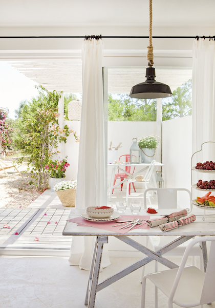 Esta casa es obra de la interiorista Estela Gómez Lupión, quien ha sabido combinar a la perfección el estilo blanco del mediterráneo con fibras naturales y muebles rescatados, consiguiendo una casa perfecta para pasar el verano.
