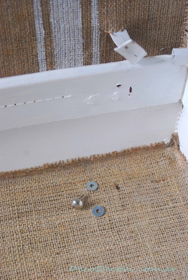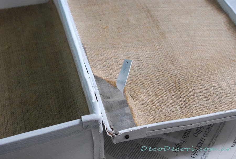 Encolada la arpillera le trae nuevamente un poco de su color primitivo, el marrón