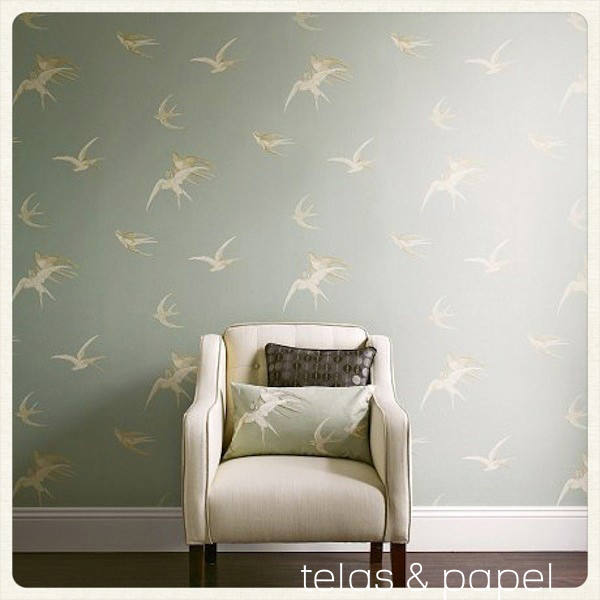 Cuando veo estos papeles tan chulos, me pregunto cómo no he caído en tener en casa nada en papel, pero es que me encanta verlo y luego no me acabo de decidir....Este que aparece en imagen me parece una belleza y con tejido del cojín parejo....no se puede pedir más....
