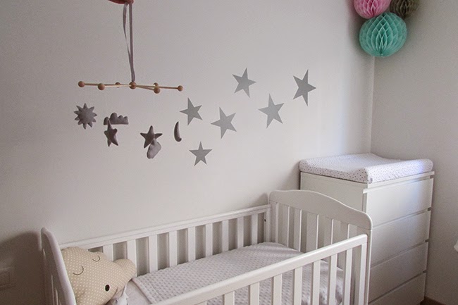 Merche además de buen gusto es una manitas y se encargó de hacer parte de la decoración, como el móvil de la cuna con esas estrellas y lunas en color gris. Si os ha gustado os he hecho una selección para que veáis mas de cerca algunos de sus detalles con este LOOK DECO.